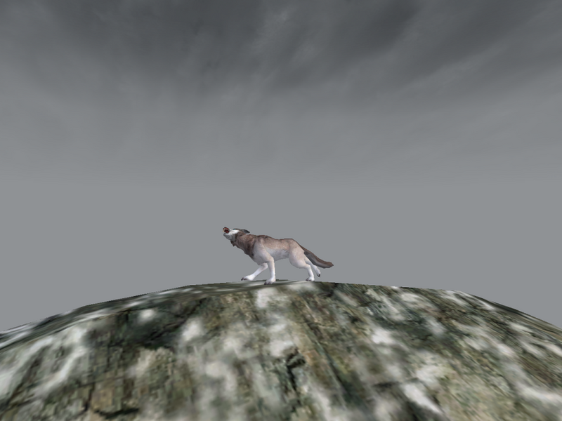 Ylwa in Snow Wulf form, on top of a very big hill.