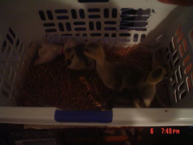 They're in a basket since it's cold out and loose geese = crap everywhere.